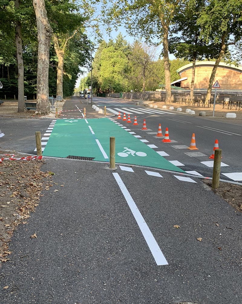 Pour les intérieurs, la résine crée des surfaces continues, hygiéniques et esthétiques, compatibles avec marquages de circulation, zones piétonnes et espaces sensibles.